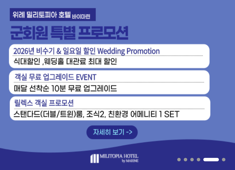 휴양소·콘도 같은 숙박시설 예약부터 제휴 할인, 복지포인트 활용, 체력단련장 안내까지 모두 한곳에서 확인할 수 있어 많은 군인·예비역·군무원이 찾는 필수 사이트입니다.