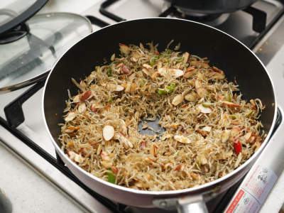 - 약불에서 가볍게 뒤집어 섞는다.