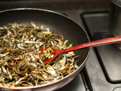 - 잔멸치(볶음용)는 굽는 것보다 볶는 것이 핵심.
