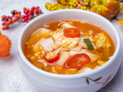 석박지는 시간이 지날수록 국물 맛이 발전하며, 떠먹는 국물김치 특유의 시원함이 강해진다.